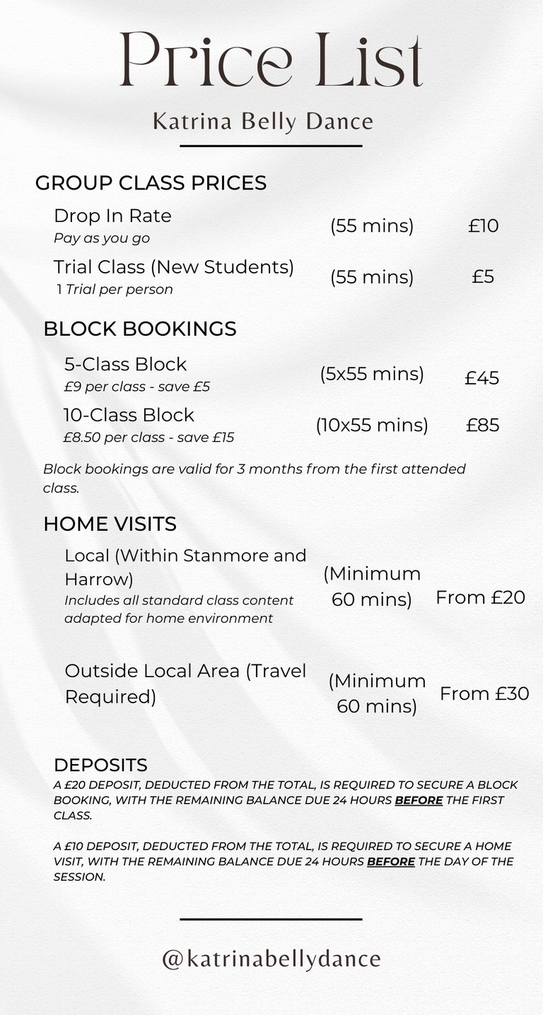 Join our dynamic and welcoming group belly dance classes, conveniently located in the Harrow area. Whether you're a complete beginner or an experienced dancer, our classes are designed to build your technique, boost your confidence and enhance your fitness in a fun, supportive environment.